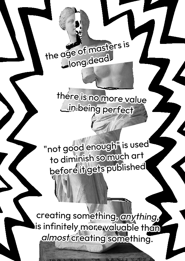 make bad art is a manifesto of sorts about working against the notion of “aesthetic over all” in art making in order to make more art.