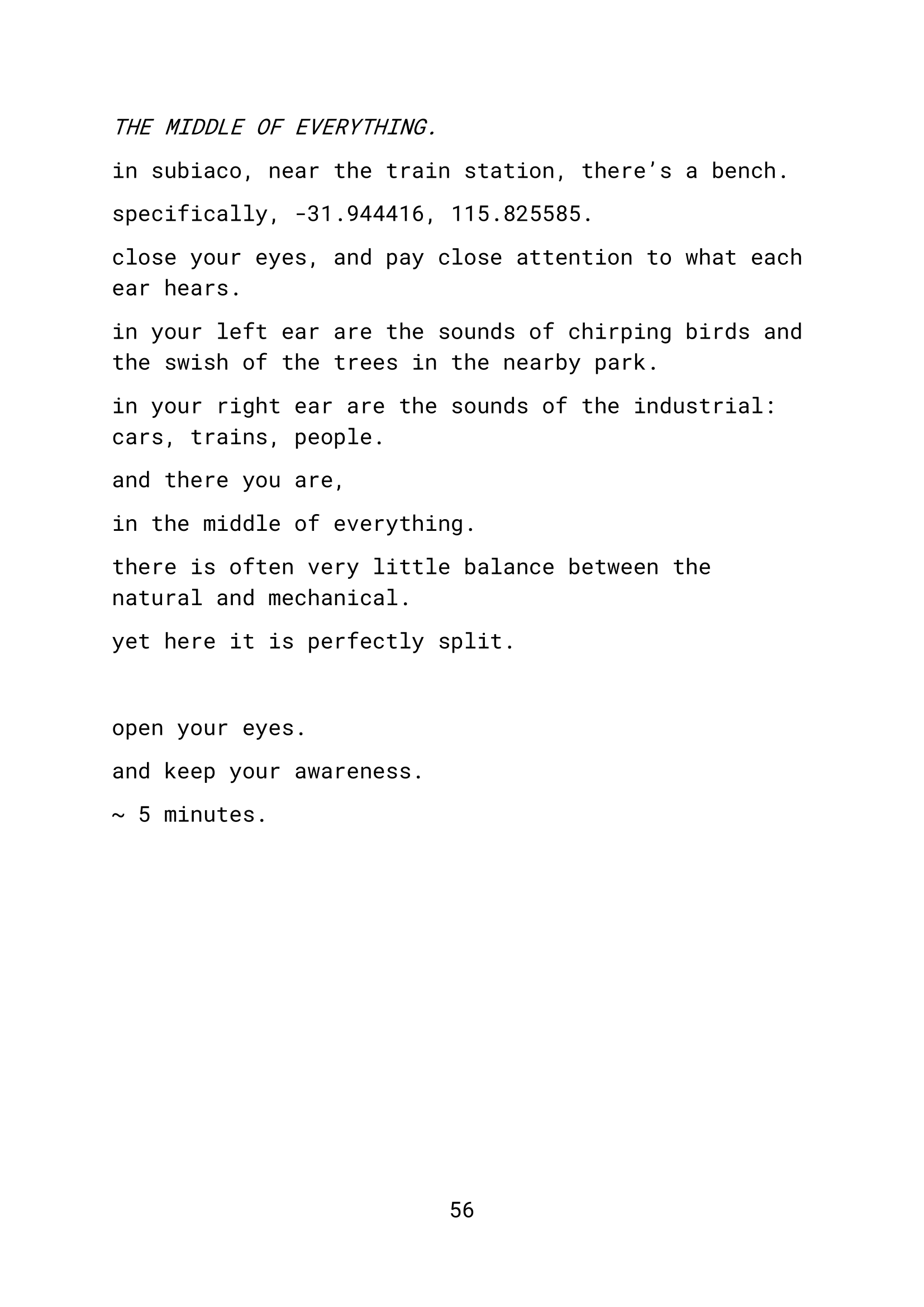 text scores 2020 – 2024 is a collection of all the text scores I wrote in the first five years of my career which follows the evolution of my artistic voice and the world around me.